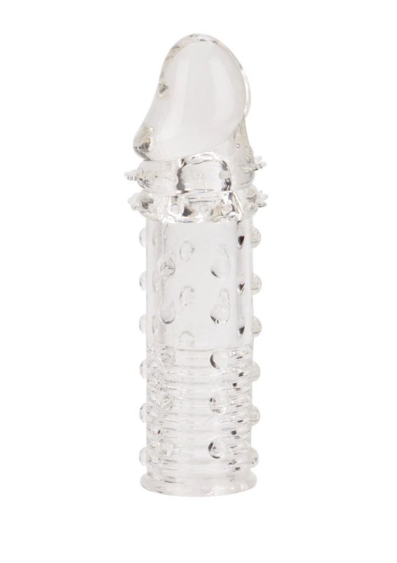 Profilowany, anatomiczny kształt, na całej powierzchni umieszczone są liczne, delikatne wypustki stymulacyjne, końcówka nakładki wykonana jest w kształcie żołędzi, która stanowi jednocześnie część przedłużającą, długość