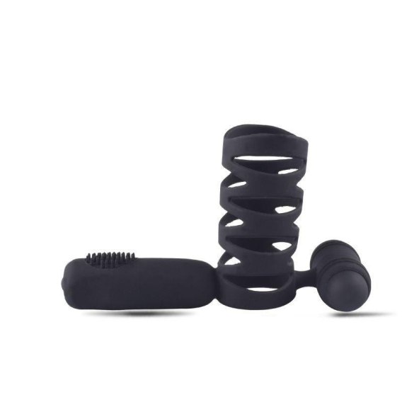 Pierścień na penisa ze zwężeniem klatki i stymulatorem odbytu, zaprojektowany dla pary i dla przyjemności obojga partnerów. Pierścień koguta gwarantuje lepszą i trwałą erekcję, wpływając na przepływ krwi.
