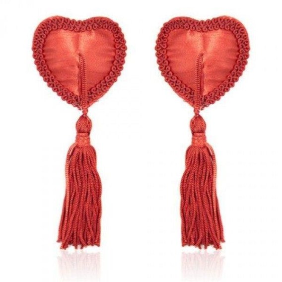 Bielizna-Heart Nipples Tassels RED