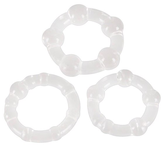 Te różnie nubbingowane pierścienie na penisa w rozciągliwym średnica˜ 3-4 cm (wewnątrz 2-2,5 cm) mogą ogromnie wydłużyć okres erekcji poprzez idealne dopasowanie i jednocześnie zapewnić silne efekty stymulacyjne. Może być stosowany pojedynczo lub w połączeniu. Wykonane z bardzo rozciągliwego materiału silikonopodobnego, dlatego idealnie nadają się również do sznurowania jąder. TPE.