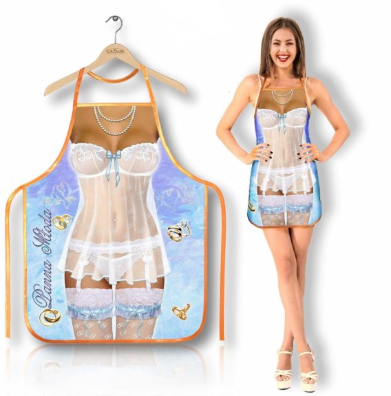 Ten fartuch to idealny prezent dla przyszłej Panny Młodej, która chce dodać przygotowaniom ślubnym odrobinę figlarnego uroku.