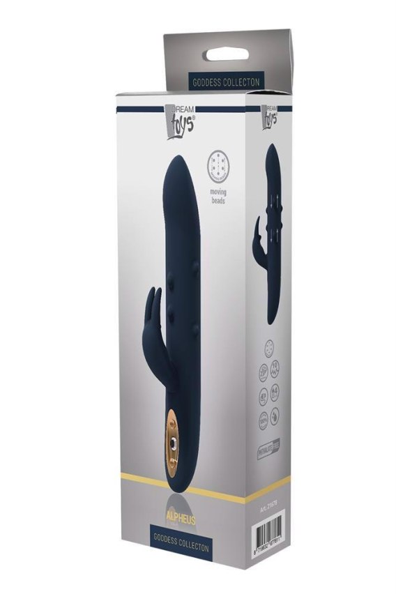 Ten wodoodporny wibrator dla królików jest wykonany z bezpiecznego dla ciała „płynnego" silikonu, dzięki czemu jest bardzo miękki w dotyku. To wydaje się prawdziwe. Dwa mocne silniki, umieszczone w górnej części wału i w stymulatorze łechtaczki, oferują 3 poziomy stałej wibracji i 7 różnych rytmów. Dodatkowe grzbiety na wale pod żołędziami zapewniają dodatkową stymulację doznania. Szczególną cechą Alpheus jest funkcja ruchomych koralików. W wale znajdują się koraliki, które podążają za ruchami wibracji. Królik jest elastyczny i ma 2 miękkie elastyczne uszy, które zapewniają doskonałą stymulację łechtaczki.