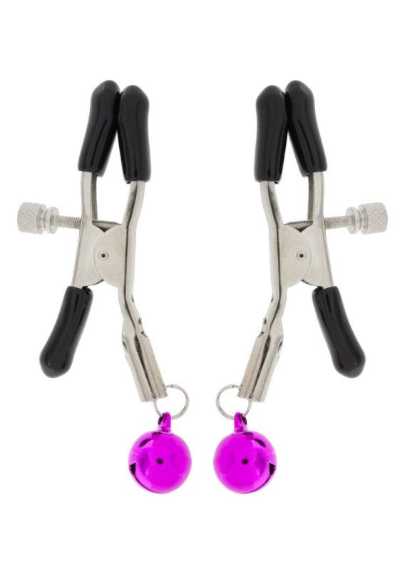 Wytrzymałe metalowe zaciski pokryte miękką gumą, te zaciski są idealne dla początkujących, jak i entuzjastów. Siłę zacisku brodawki można regulować obracając śrubę. Dwa dzwoneczki przymocowane do zacisków wzbogacą zabawę.