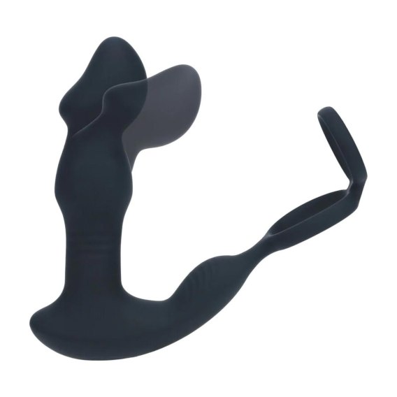Remote Control Vibrating Thrusting Come-Hither Silicone Prostate Stimulator with Cockring - Black