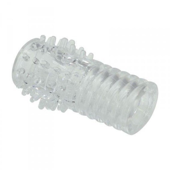 Nakładka na penisa TPE z guzkami. Dwustronne rękawy, rękaw kurek lub masturbator. Średnica 2,7 cm. Długość 10 cm. Bez ftalanów.