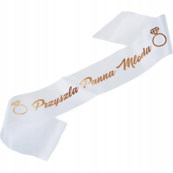 BIAŁA SZARFA Z NAPISEM " PRZYSZŁA PANNA MŁODA" W KOLORZE ROSE GOLD
