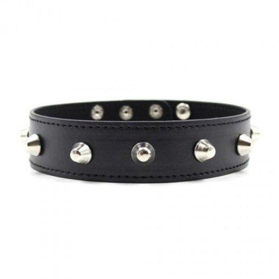 Obroża ze skóry z ćwiekami i kolcami. Dzikość skóry i chłód metalu razem: przyjemność i ból dla miłośników BDSM. Nie ma hamulców dzięki linii Toez4Lovers Fetish Art!